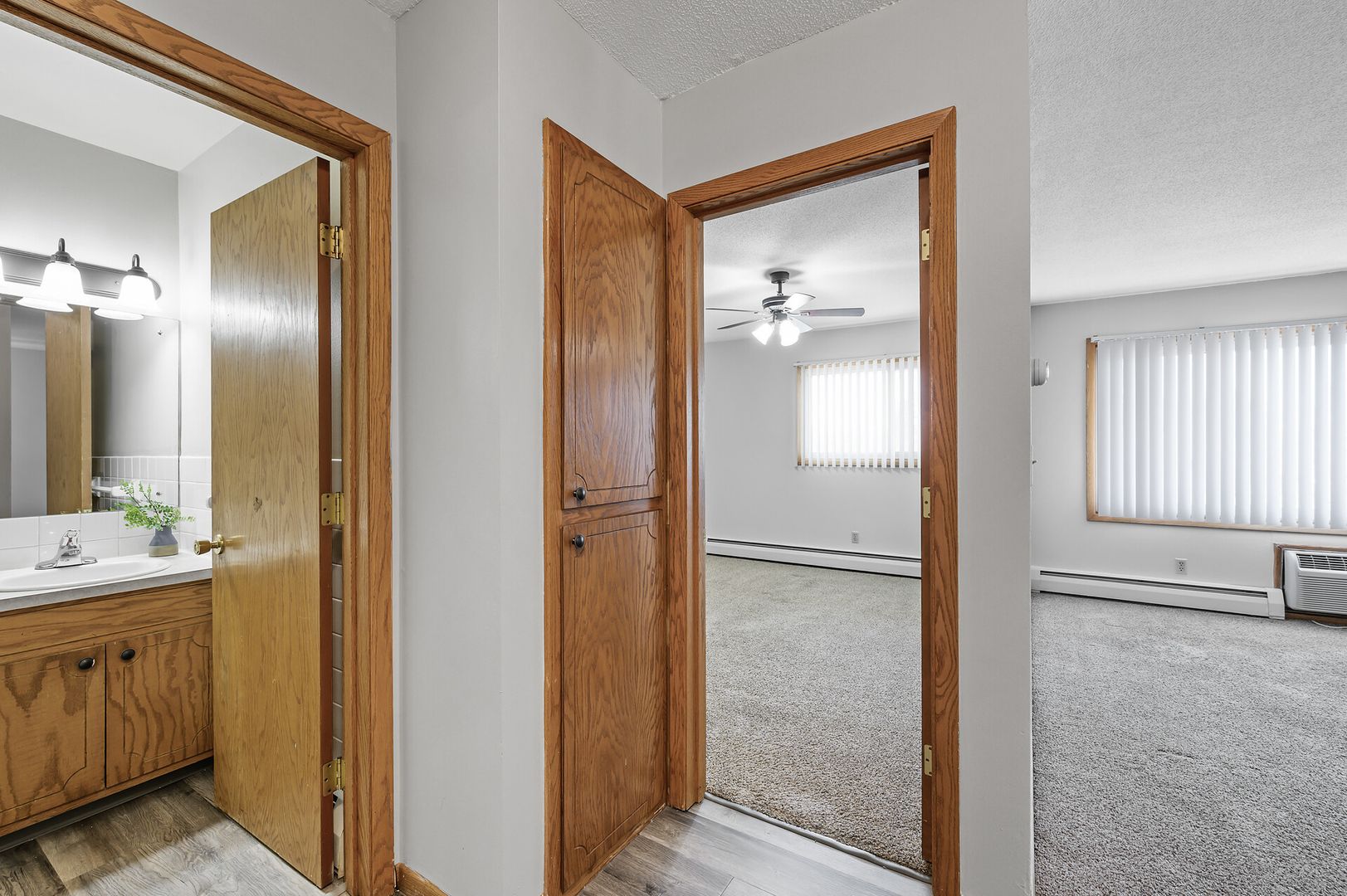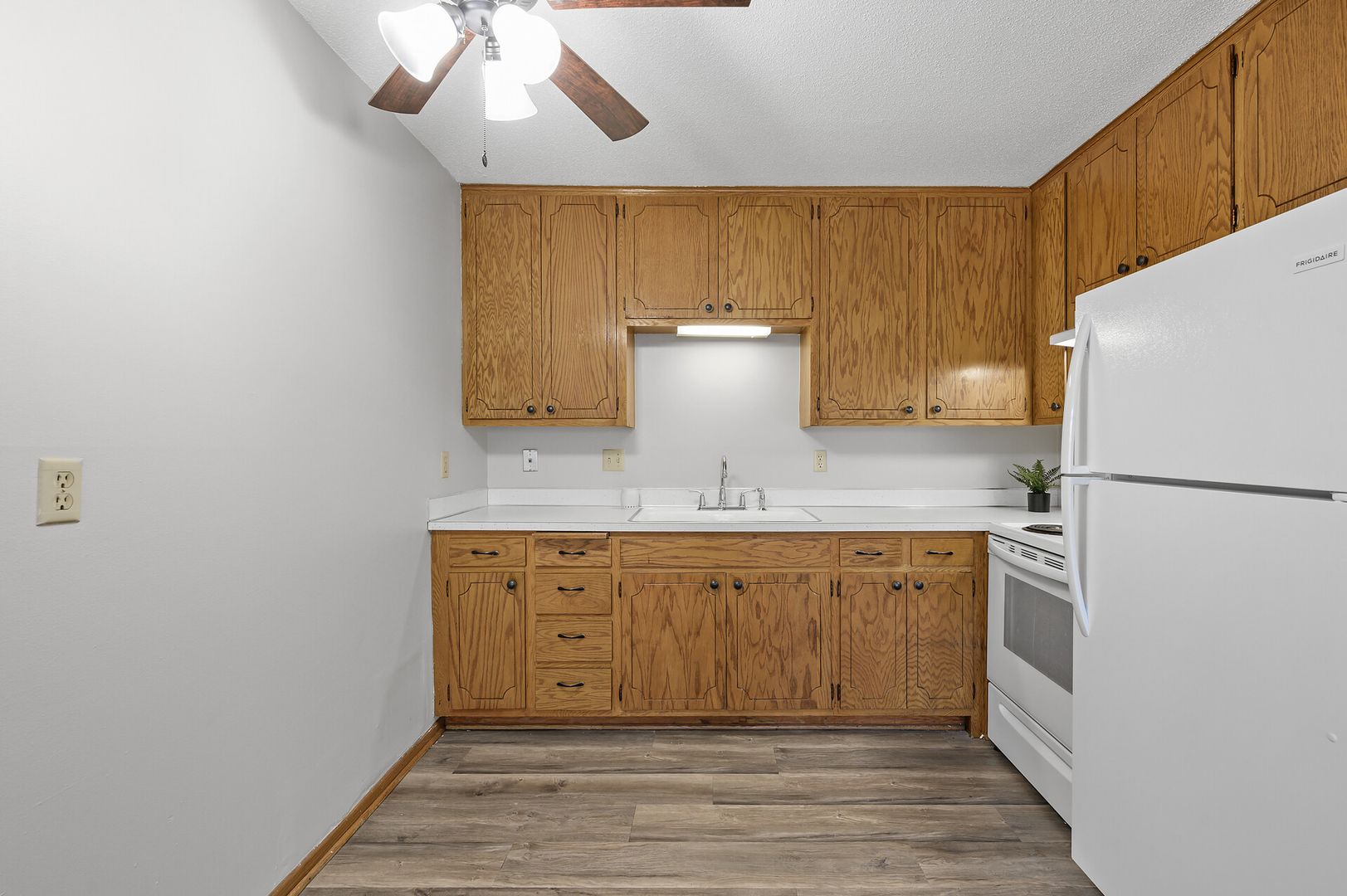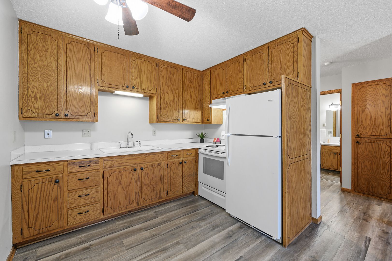 Great 1 bedroom, 1 bathroom apartment home located on the 2nd floor of the community. This unit features built in storage, galley kitchen, carpeted flooring in living and bedroom, ceiling fans, and updated lighting all help to make this apartment a great next home for you!